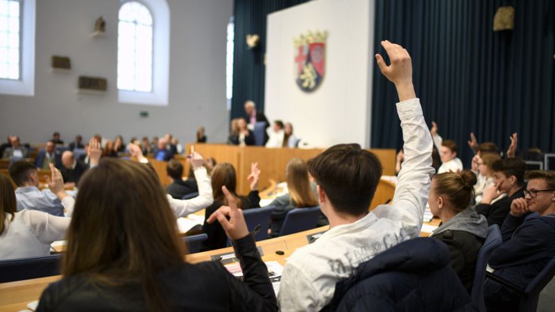 Zur Online-Anmeldung eines Besuchs im Landtag Rheinland-Pfalz: Link zur Anmeldung zum Besuchsprogramm für weiterführende Schulen (8. - 13. Klasse)